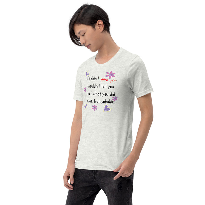 "If I didn't love you, I wouldn't tell you that what you did was transphobic." Love wins.