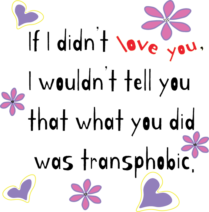 "If I didn't love you, I wouldn't tell you that what you did was transphobic." Love wins. When we call each other in, real progress can be made.